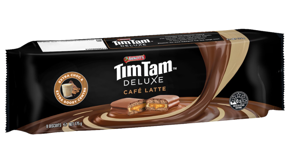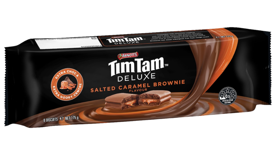 Tim Tam Deluxe includes the 4 mouth-watering flavours of Salted Caramel Brownie, Decadent Triple Choc, and now featuring all NEW Café latte.